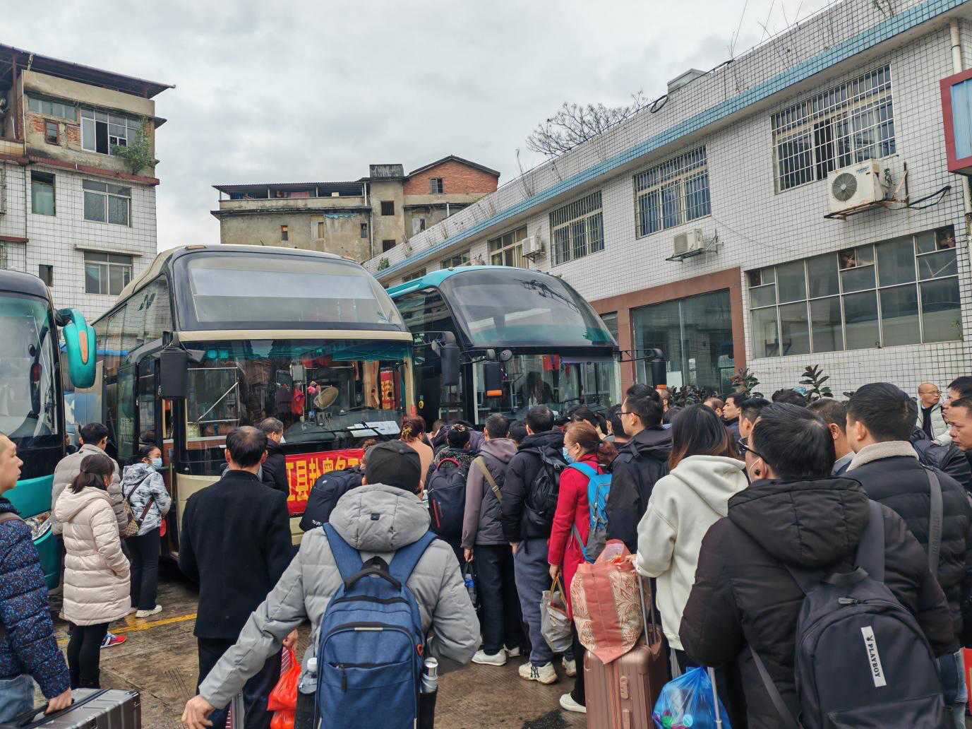 日前,柳州市三江侗族自治县2025年粤桂劳务协作赴粤返岗“点对点”服务专车活动在县城河东汽车站集中发车,帮助外出务工人员免费乘坐大巴车前往广东和梧州市等地,开启新一年的奋斗征程,有效解决务工人员返岗的交通难题。