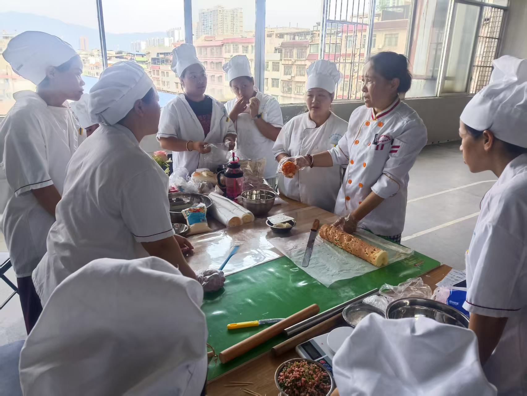 灵川县人力资源和社会保障局组织业务骨干深入县内宾馆、餐饮、康养等重点企业调研,组建专业的技能专家服务团队,积极开展餐饮服务、家政服务、康养陪护等技能指导,显著提升了这些企业的文旅接待水平。为进一步扩大灵川文旅的影响力,灵川县人力资源和社会保障局将“漓江上游福地古韵神奇灵川”的旅游形象定位等内容纳入本县职业技能培训常规课程,让更多从业人员了解并传播灵川的特色文化。截至2025年8月,灵川县共开展西式面点师、酥皮茶点、病患陪护等职业培训42期,完成职业技能培训1101人次。