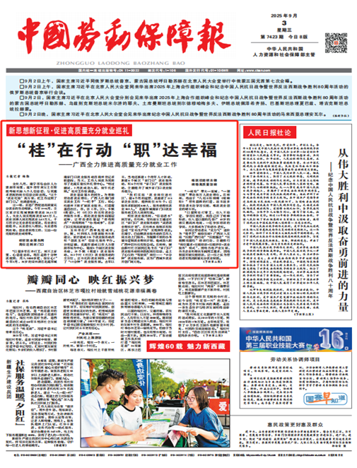 中国劳动保障报9月3日头版头条版面截图。