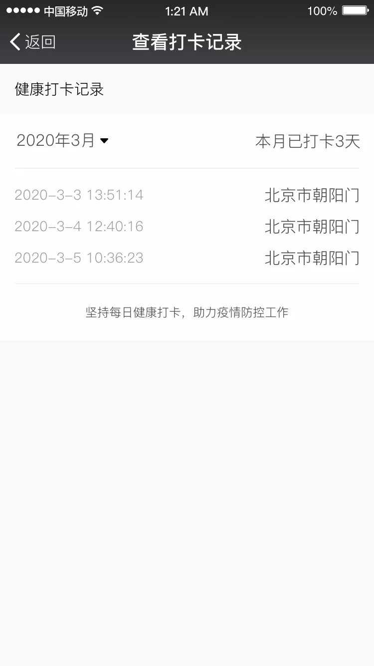 个人各渠道填报的符合统一标准的防疫健康打卡信息,均可查询。