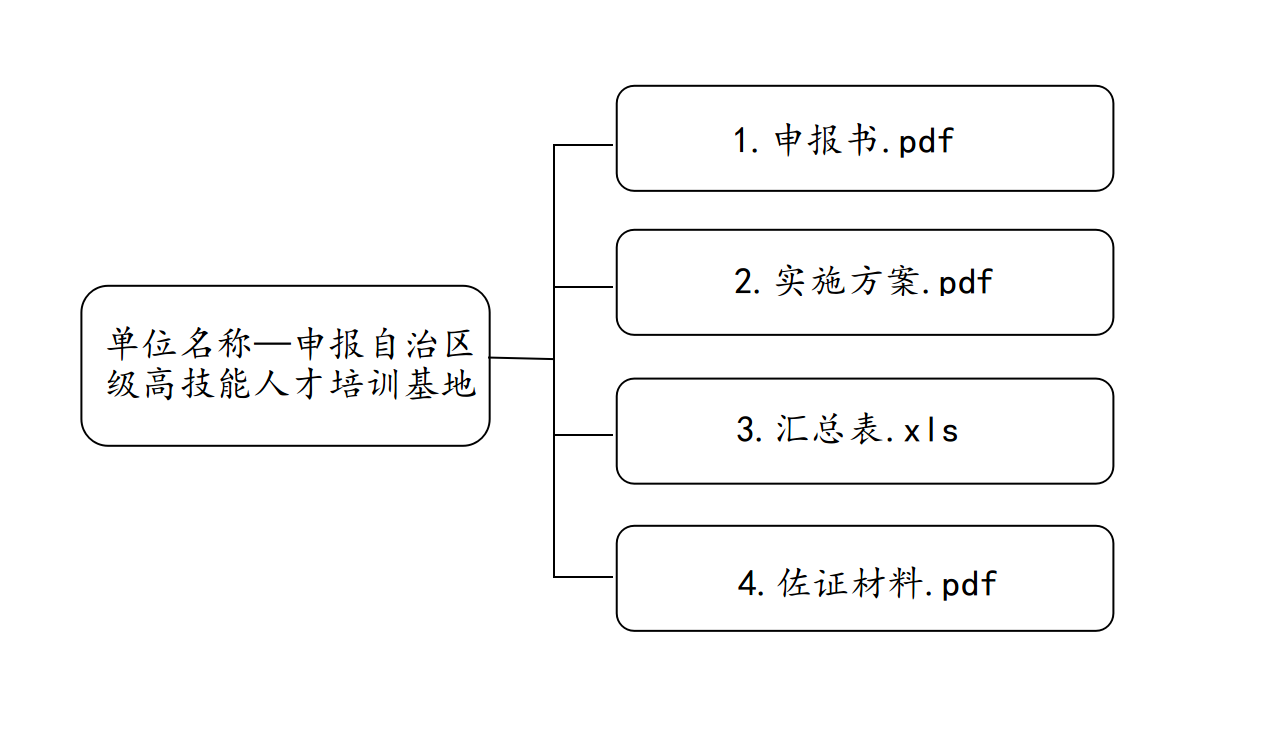 (一)申报单位填写《自治区级高技能人才培训基地建设项目申报书》(附件1)、《自治区级高技能人才培训基地建设项目实施方案》(附件2)、《自治区级高技能人才培训基地申报情况汇总表》(附件3),提交相关佐证材料。
