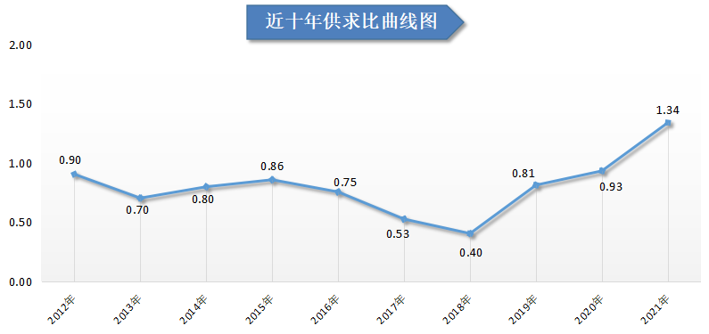近十年人才供求比变化曲线图如下: