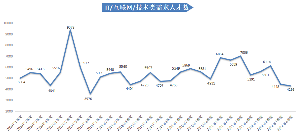 5.IT/互联网/技术类职位人才需求同比大幅下滑