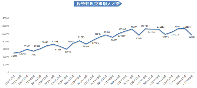 2024年第四季度,广西人才网中的人才供应量出现季节性回落,求职人才数为404281人,与上年同期相比减少4432人,同比下滑1.08%,环比下滑15.26%。