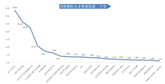 另外,有17个行业类别的人才需求相较于上年同期出现不同程度的下滑。信息传输、计算机服务和软件业的人才需求减少量排名第一,需求人才数比上年同期减少2280人,同比下滑21.81%;其次是建筑业,需求人才数比上年同期减少2045人,同比下滑34.35%。