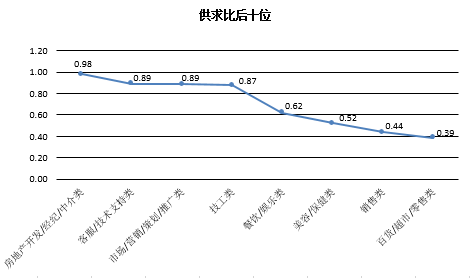(五)总体就业压力放缓,服务类和销售类职位人才供求比垫底