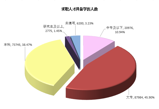 5.广西人才网联系统求职人才学历长期集中在大专和本科学历,其求职人才数占比分别为45.90%和38.47%,大专和本科学历的求职人才共计161729人,与上年同期的157995人相比增加3734人,小幅增长2.36%。