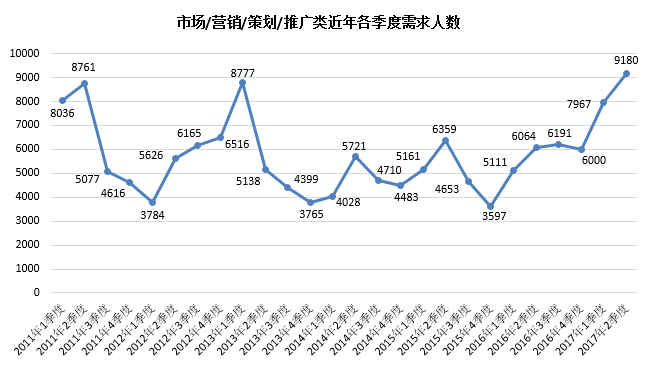 2.市场/营销/策划/推广类职位人才需求涨势明显