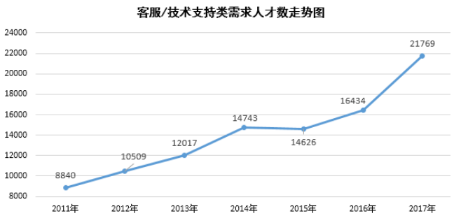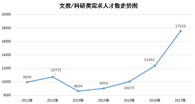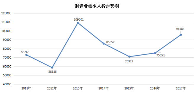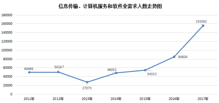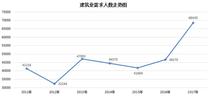 2017年,广西全区生产总值(GDP)20396.25亿元,首破二万亿元。按可比价格计算,比上年增长7.3%,增速高于全国0.4个百分点,总体呈稳步增长的态势。三大产业占GDP比重分别为14.2%、45.6%和40.2%,其中第三产业为2004年以来的最高水平,本年度对经济增长贡献最大,成为拉动我区经济增长的第一动力。在宏观经济稳健发展的背景下,广西人才网联系统中用人单位数量和人才需求量也呈现稳步增长趋势,特别是第三产业中新兴行业持续蓬勃发展,对人才的需求呈现快速增长的趋势。