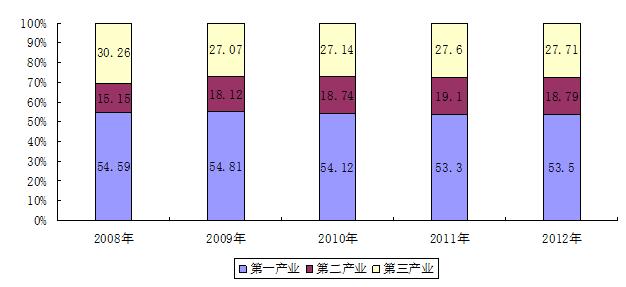 图1 近五年全区就业人员产业构成情况