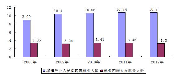 图3 近五年城镇失业人员再就业人数