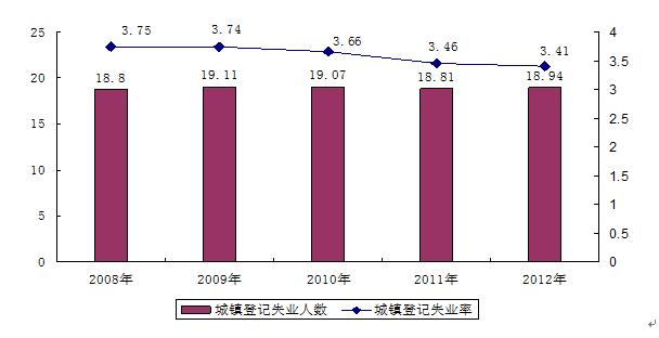 图4 近五年城镇登记失业人数及登记失业率