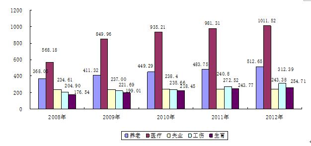 社会保险工作深入开展,社会保障体系建设取得重大进展。全年五项社会保险(不含城乡居民社会养老保险)基金收入合计478.11亿元,比上年增长74.39亿元,增长率为18.43%。基金支出合计407.74亿元,比上年增长80.85亿元,增长率为24.73%。