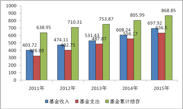 社会保险工作深入开展,社会保障体系建设取得重大进展。全年五项社会保险(不含城乡居民基本养老保险)基金收入合计697.92亿元,比上年增长89.68亿元,增长率为14.74%。基金支出合计636.5亿元,比上年增长80.33亿元,增长率为14.44%。
