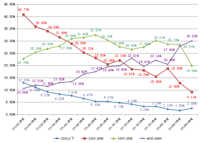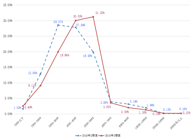 2018年第三季度广西人才网联系统中用人单位发布职位的平均薪酬(其定义见注4,下同)为4745/月,环比小幅增长2.28%,而求职者期望薪酬为4414/月,环比微降0.54%。用人单位提供的职位平均薪酬水平依旧比求职者的期望薪酬略高。