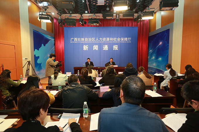 自治区人力资源和社会保障厅相关业务处室主要负责人,中央驻邕、区直及南宁市主要媒体记者参加了此次通报会。
