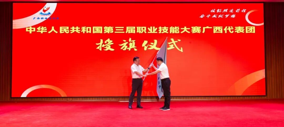 9月16日,中华人民共和国第三届职业技能大赛(以下简称“第三届全国技能大赛”)广西代表团出征仪式在广西工业技师学院举行。自治区人力资源社会保障厅党组书记、厅长唐标文作动员讲话并向广西代表团授旗,自治区人力资源社会保障厅党组成员、副厅长韦杰主持出征仪式。