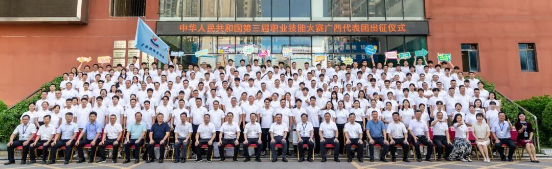 广西代表团全体选手、裁判员、工作人员、选手所在单位相关领导嘉宾、技术指导教练共250人参加出征仪式。