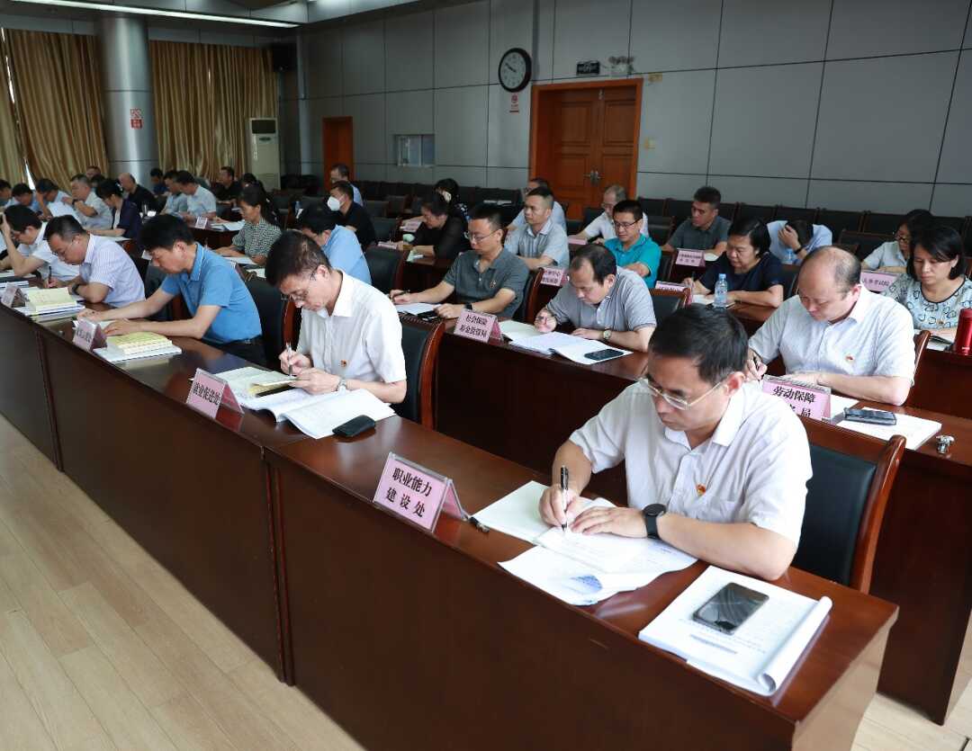 在家厅党组成员出席会议,在家厅机关二级巡视员,自治区社保中心正副主任、二级巡视员,驻厅纪检监察组代表,厅机关各处室,自治区社保中心各部室,厅属各单位主要负责同志,厅主题教育办有关同志参加会议。