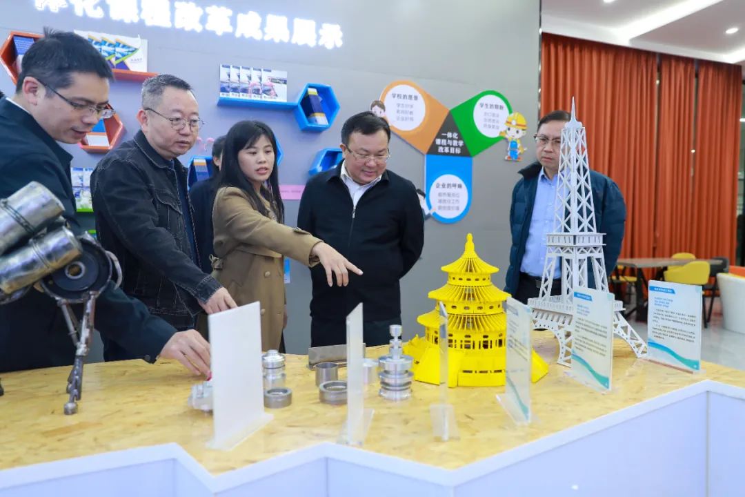 唐标文(右二)在柳州市技工学校(革新校区)观看教学成果展示