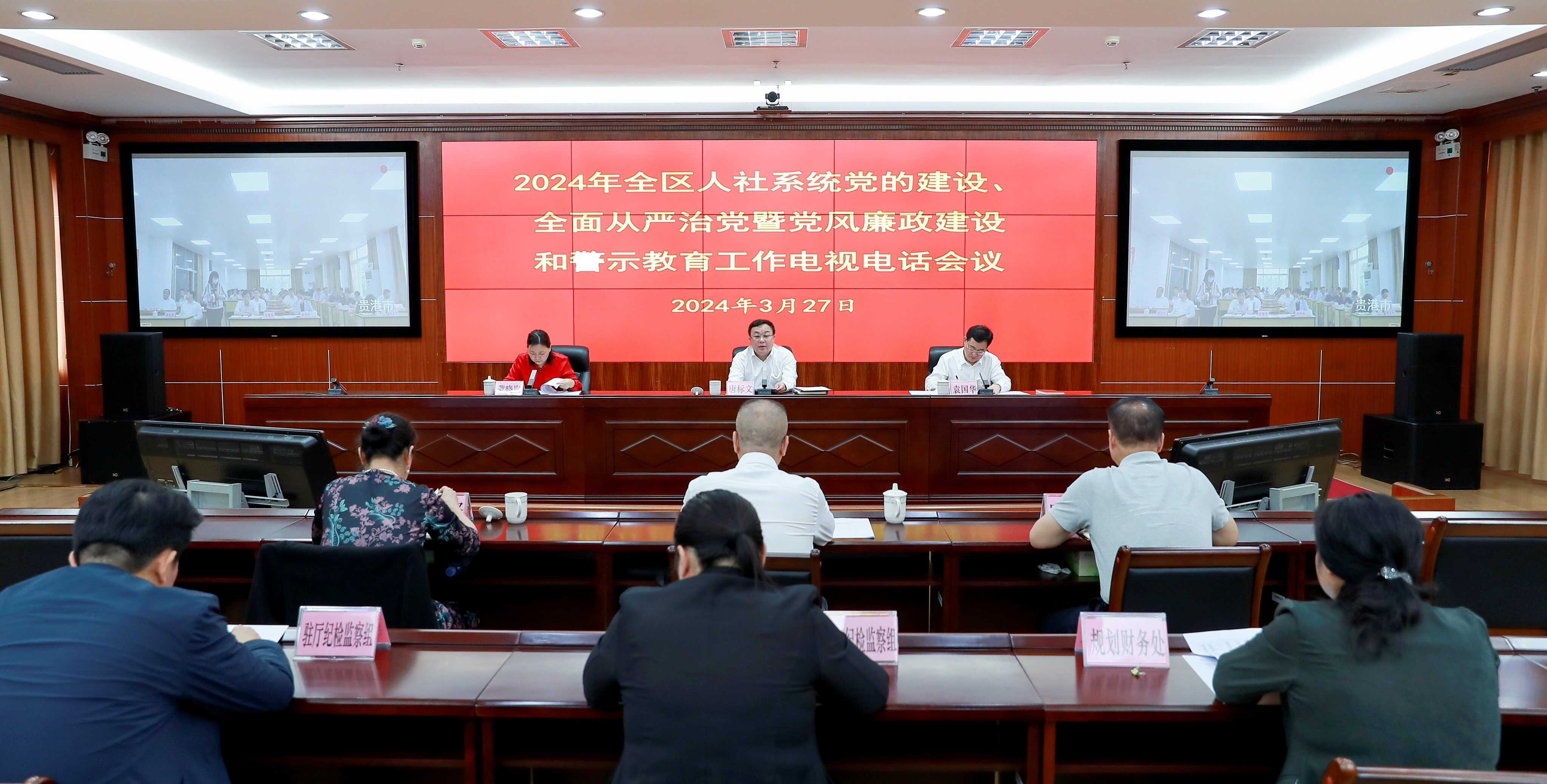 2024年全区人社系统党的建设、全面从严治党暨党风廉政建设和警示教育工作电视电话会议召开