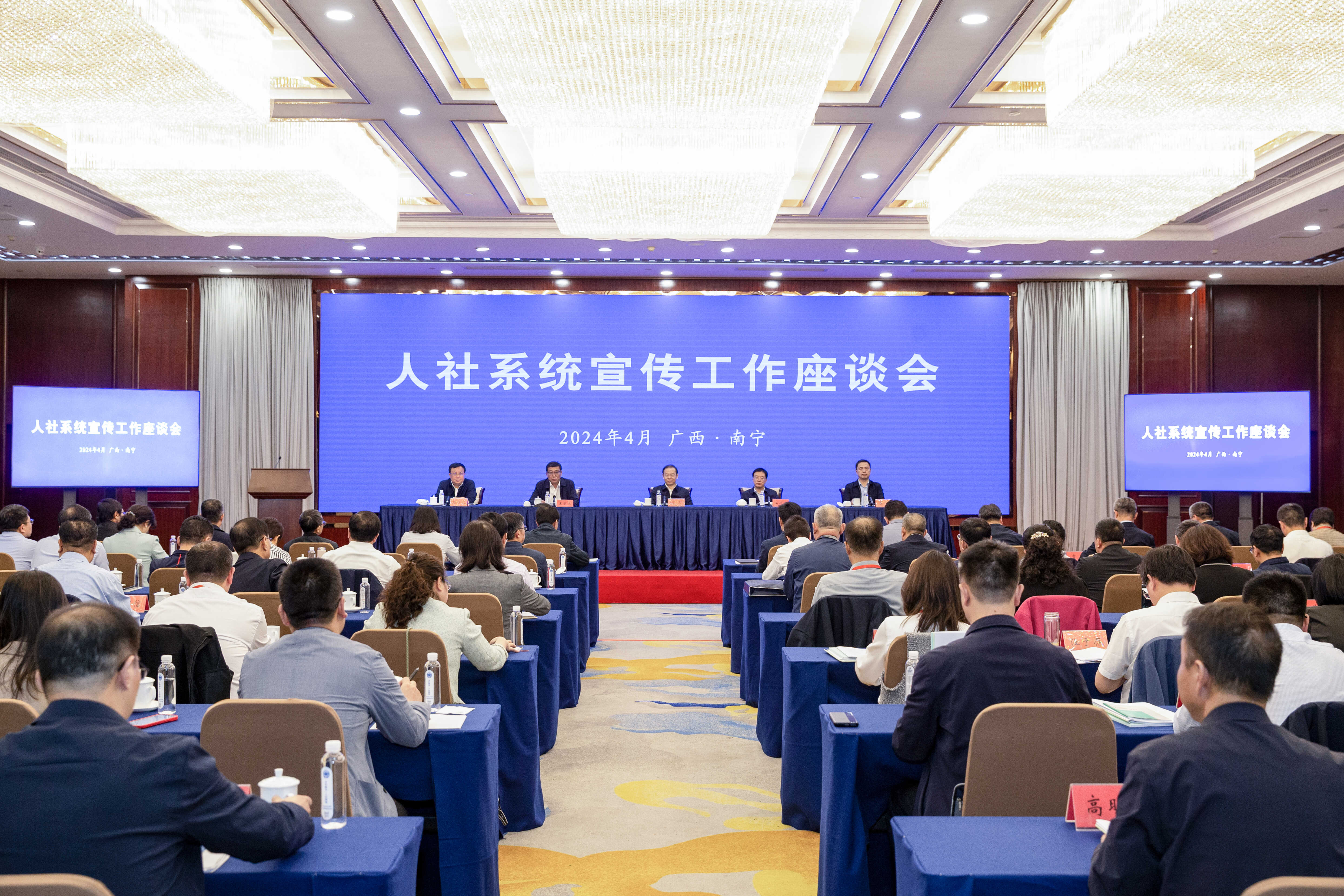 4月9日至10日,人力资源社会保障部在广西壮族自治区南宁市召开人社系统宣传工作座谈会。人力资源社会保障部党组成员、副部长李忠出席会议并讲话,自治区人民政府副主席苗庆旺参加会议并致辞。会议全面贯彻党的二十大和二十届二中全会精神,深入学习贯彻习近平文化思想,按照全国宣传思想文化工作会议、全国宣传部长会议和全国人社工作会议部署,总结交流人社宣传工作经验,分析人社宣传工作形势,部署安排2024年人社宣传工作。自治区人力资源社会保障厅党组书记、厅长唐标文代表广西在会上作经验交流发言。