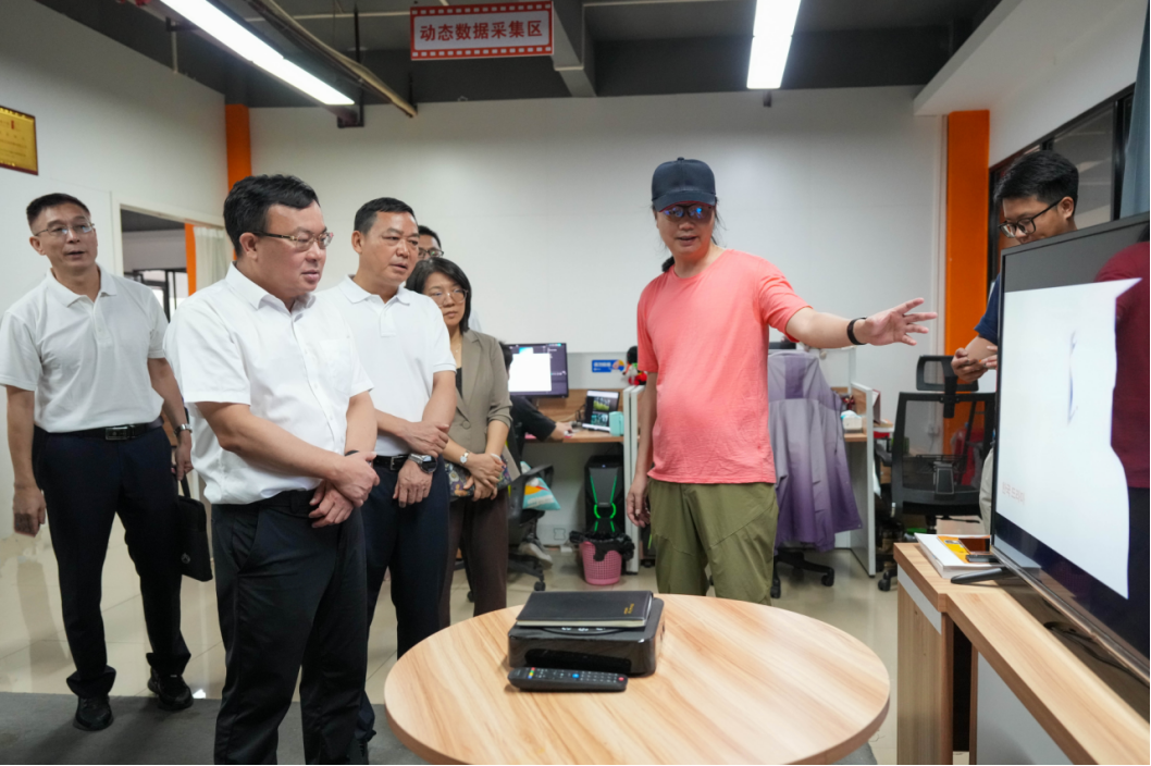 唐标文(左二)在贺州学院创新创业园了解大学生创业孵化项目运行情况