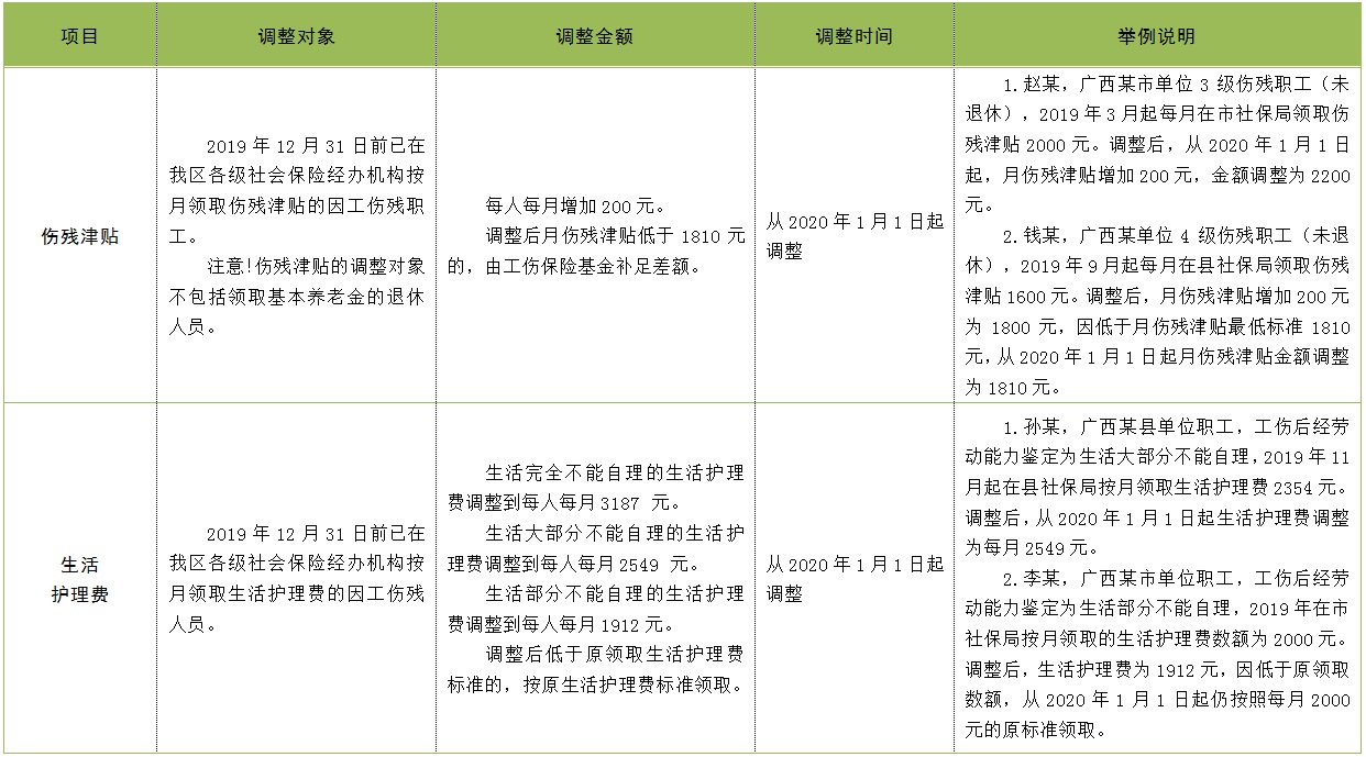 【表格】一张表看懂广西2020年工伤保险待遇调整