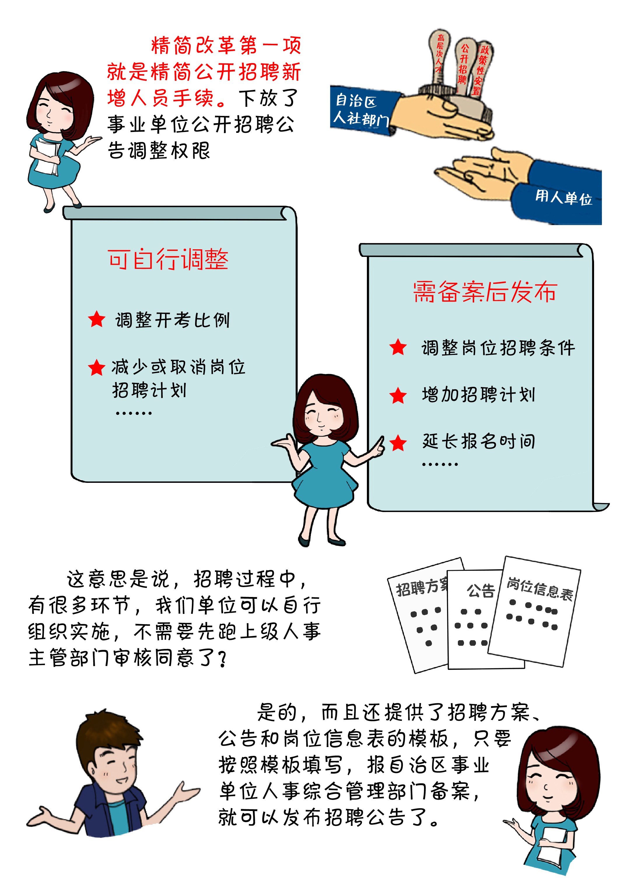 【漫画】广西人社政策漫画解读之精简事业单位增人手续