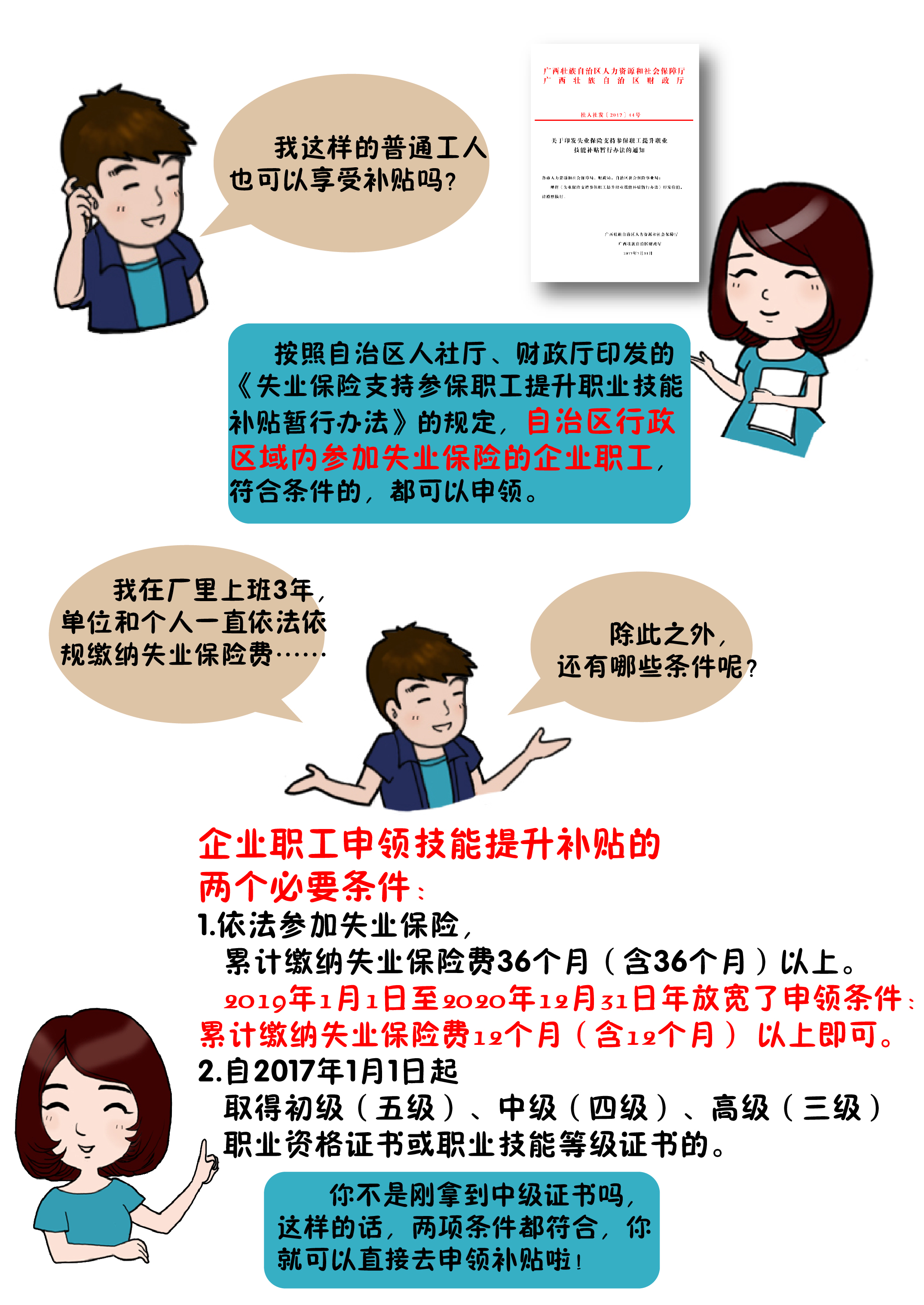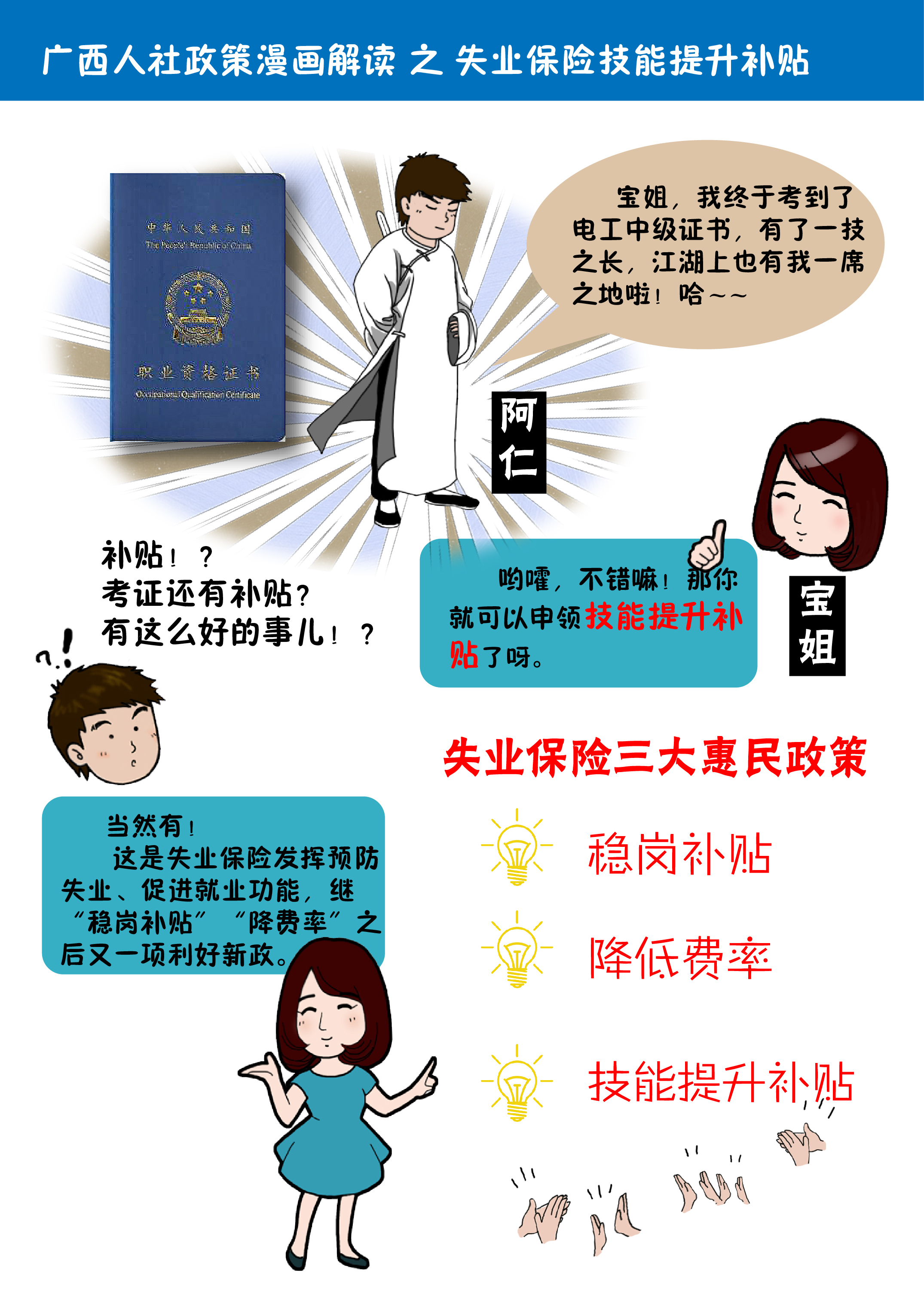 【漫画】广西人社政策漫画解读之失业保险技能提升补贴