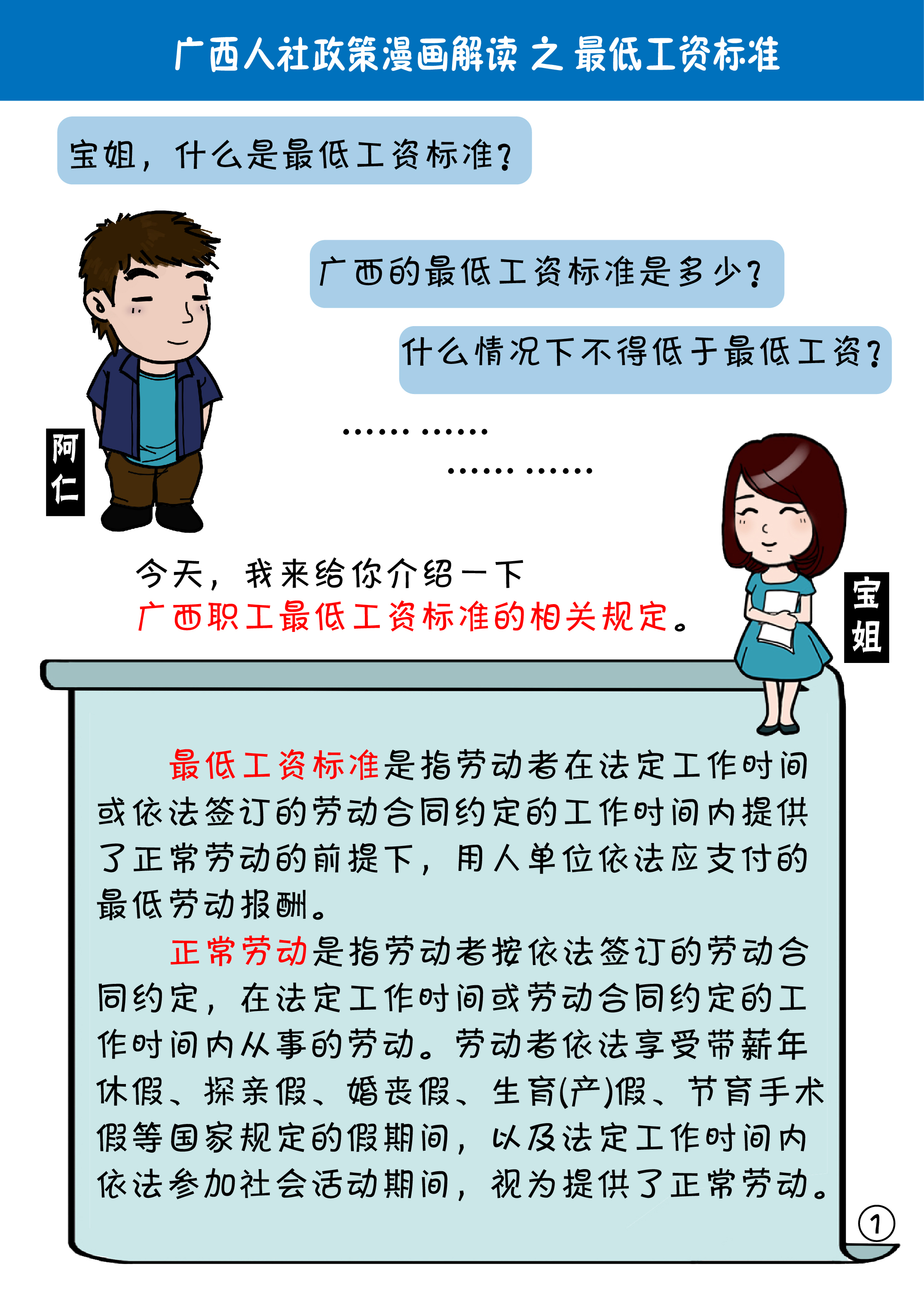【漫画】广西人社政策漫画解读之最低工资标准