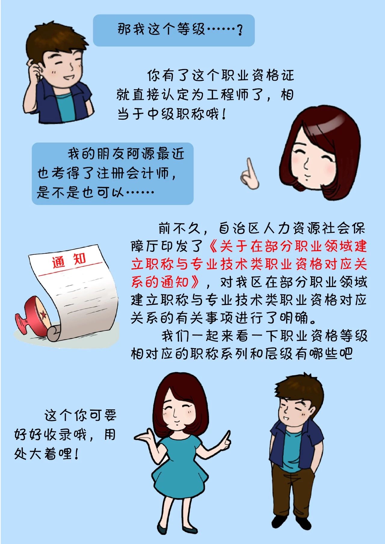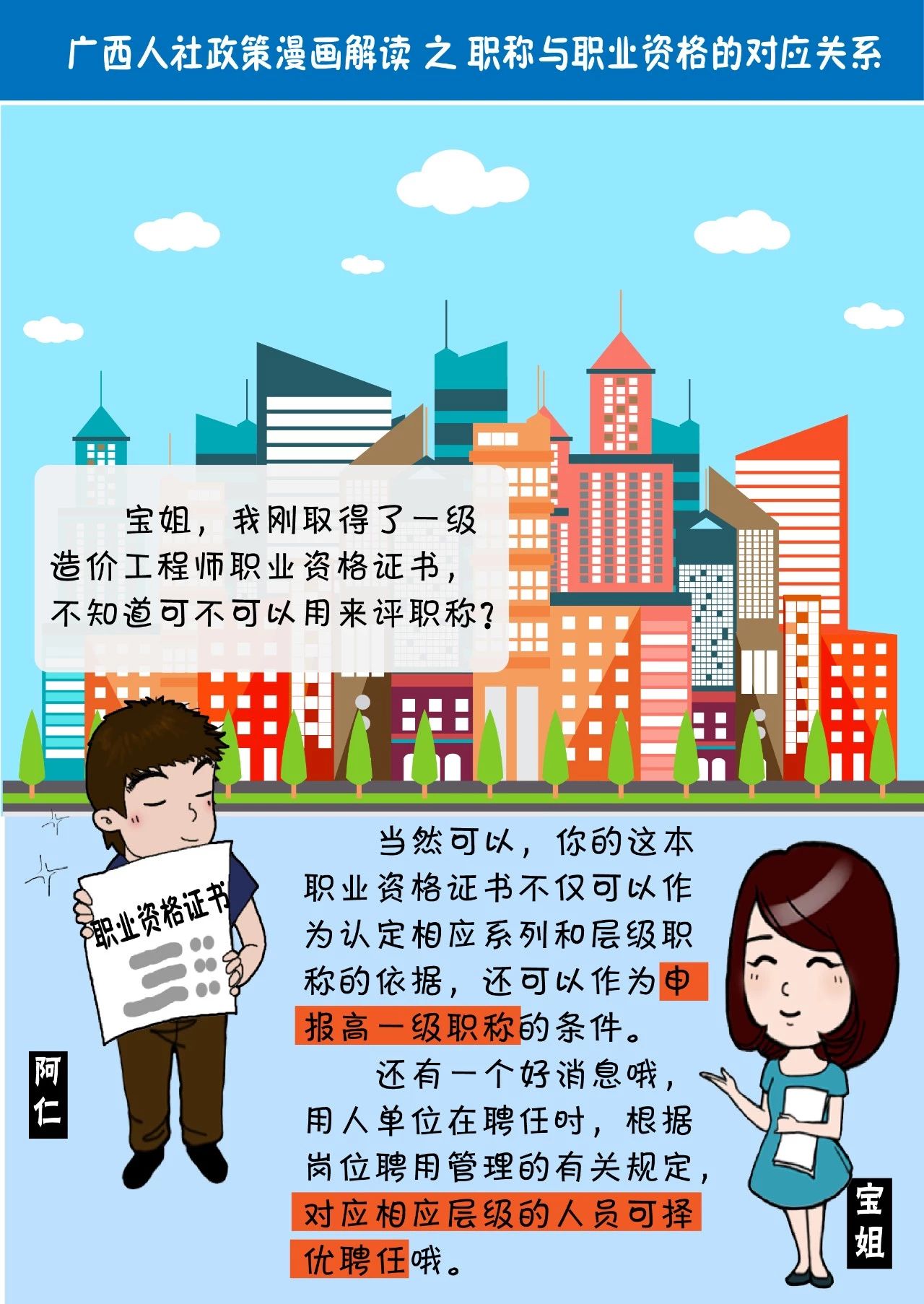 【漫画】广西人社政策漫画解读之职称与职业资格的对应关系