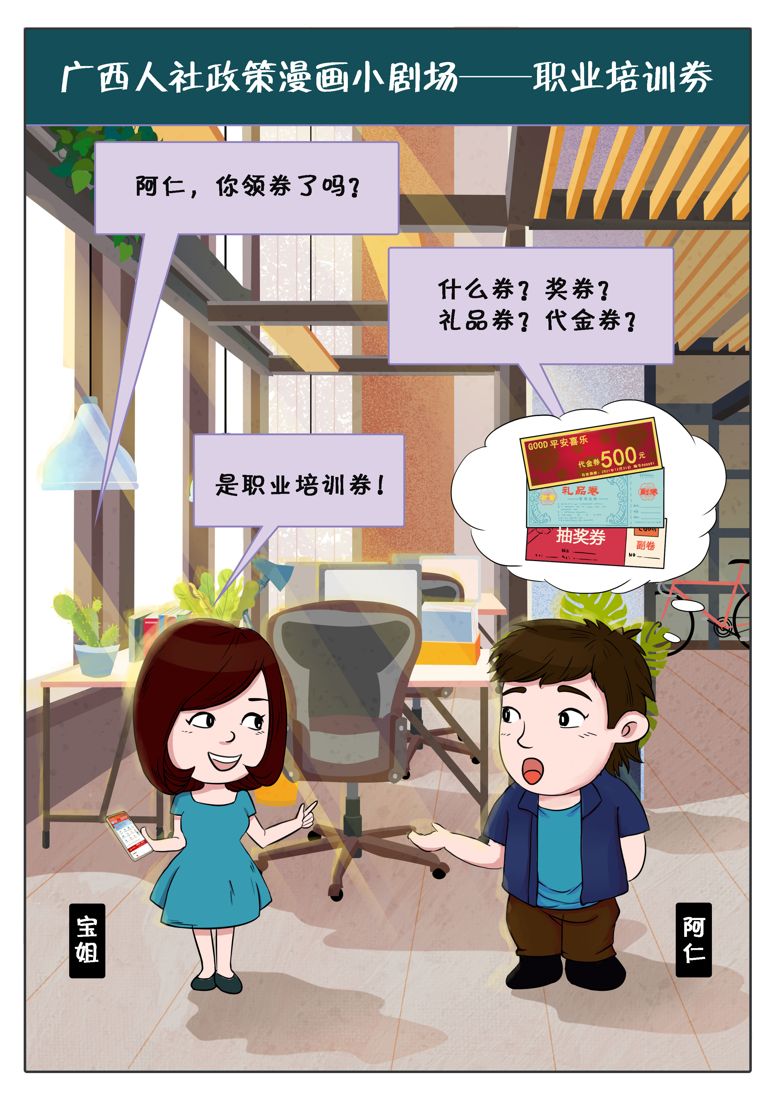 【政策漫画】广西人社政策漫画小剧场——职业培训券