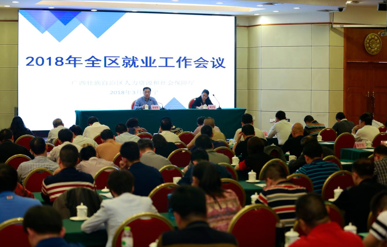 2018年3月30日,自治区人力资源和社会保障厅在南宁召开2018年全区就业工作会议。会议传达学习了全国“两会”、全国人社工作会议精神,总结了过去5年特别是2017年的就业工作,分析了就业工作形势,对2018年就业工作任务进行部署。自治区人力资源社会保障厅党组书记、厅长李宁波出席会议并讲话,副厅长黄学军主持会议并作总结讲话。各市人力资源和社会保障局分管就业的副局长、各市就业促进科、人力资源市场科等科室负责人共120余人参加会议。